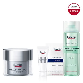 유세린 하이알루론 3X 나이트크림 50ml [증정]울센마스크 + 3X나이트크림미니 7ml+더모퓨리파이어 오일컨트롤 토너 200ml