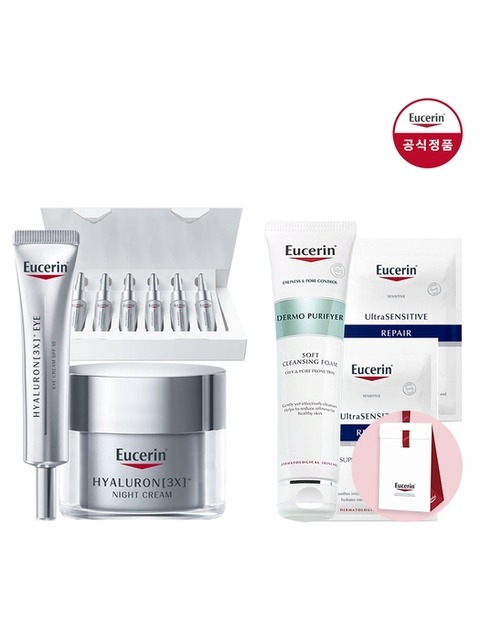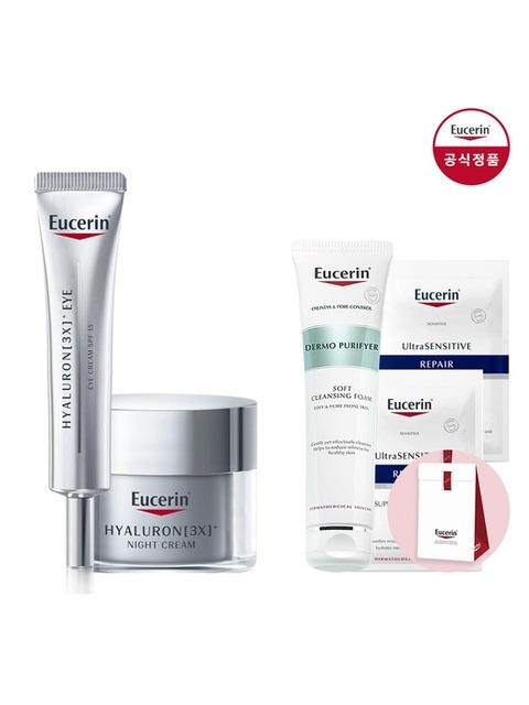[유세린] 유세린 하이알루론 3X 아이크림15ml + 하이알루론 3X 나이트크림 50ml [증정]더모퓨리파이어 클렌징 폼 150g + 울센마스크팩 2매 + 리본선물상자