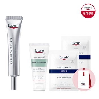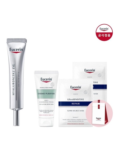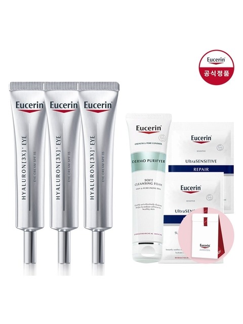 [유세린] 유세린 하이알루론 3X 아이크림 15ml 트리플팩 [증정]더모퓨리파이어 클렌징 폼 150g + 울센마스크팩 2매 + 리본선물상자