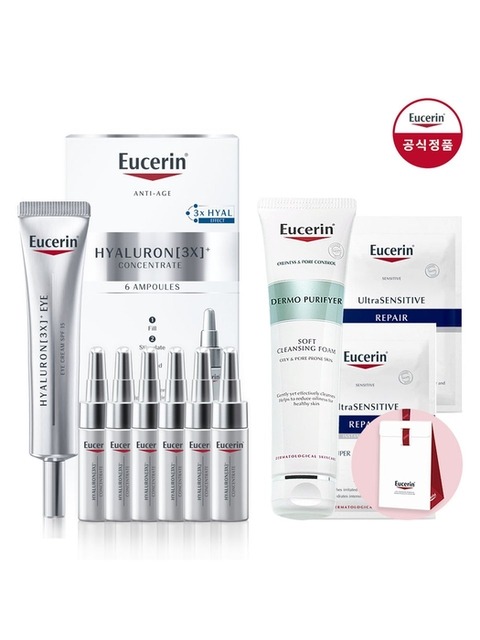 [유세린] 유세린 하이알루론 3X 안티에이징기획 - 3X 아이크림15ml+3X 컨센트레이트5ml*6 [증정]더모퓨리파이어 클렌징 폼 150g + 울센마스크팩 2매 + 리본선물상자