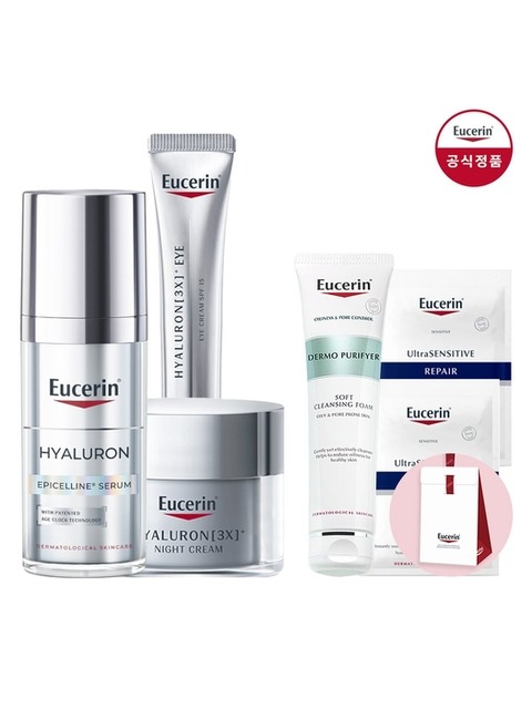 [유세린] 유세린 하이알루론 에피셀린 세럼 30ml + 하이알루론3X 아이크림 15ml + 하이알루론 3X 나이트크림 50ml [증정]더모퓨리파이어 클렌징 폼 150g + 울센마스