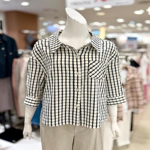 [트리아나]여름 체크 카라넥 블라우스 AL2BA05_A
