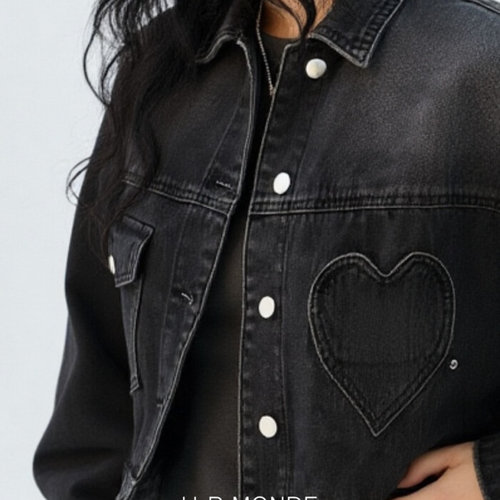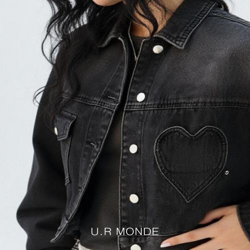[유아몽드]카라넥 빈티지 하프크롭 숏 데님 자켓 간절기 데님 아