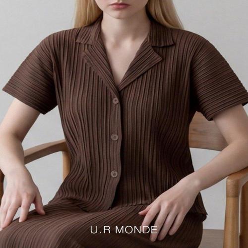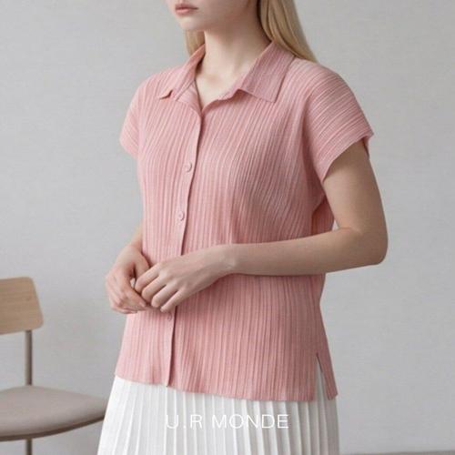 [유아몽드]세로 플리츠 카라 넥 반팔 블라우스 가디건 4color 슬