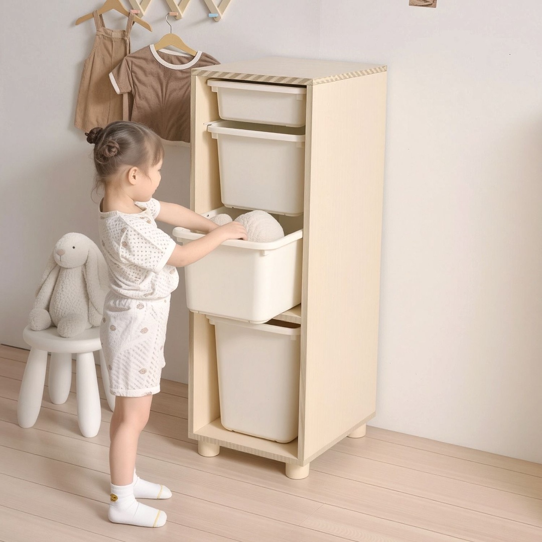 토토리 바구니 수납장 아기 유아 장간남 수납장 장난감 자동차 정리대 4단
