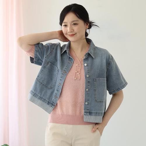 [웬디즈갤러리]밑단 줄지 데님 반팔 자켓 /여름 편한 캐주얼 외출룩 VJK106