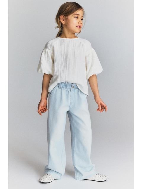 [에이치엔엠] 와이드 레그 페이퍼백 웨이스트 진 라이트 데님 블루 1228834011