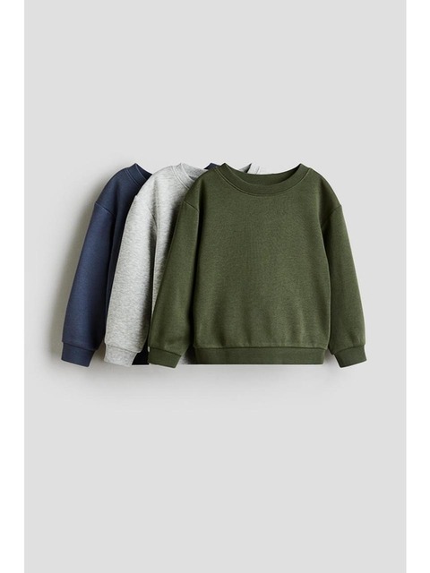[에이치엔엠] 기모바지, 기모레깅스기모 라인드 스웨트셔츠 3피스 세트 더스티 블루/다크 그린 1173514012
