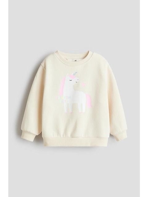 [에이치엔엠] 기모바지, 기모레깅스기모프린트라인드 스웨트셔츠 라이트 베이지/유니콘 1305880003