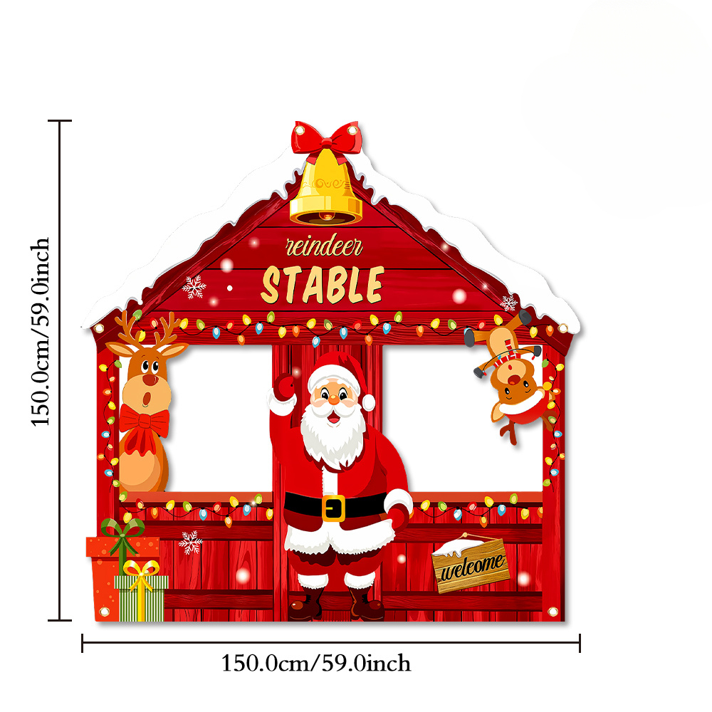 TEMU 1개, 크리스마스 테마의 빨간색 나무 집, 산타클로스와 사슴 벨 패턴 컷아웃 사진 프레임 포함, 150*150cm, 크리스마스 파티 사진 소품, 새해 파티 장식 배너, 겨울 파티 장식