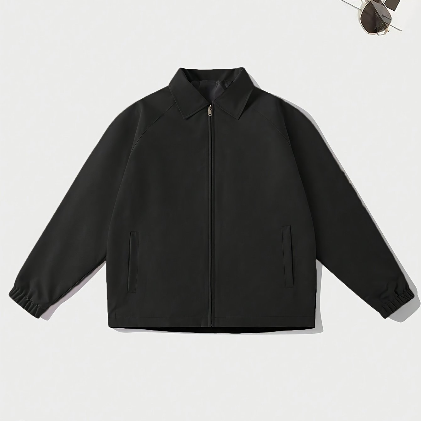 TEMU 남성용 세련된 블랙 코치 자켓 - 포켓이 있는 캐주얼 지퍼 업 봄버, 폴리에스터 안감, 봄과 가을에 완벽한 캐주얼 의상 자켓|지퍼 업 봄버|폴리에스터 안감