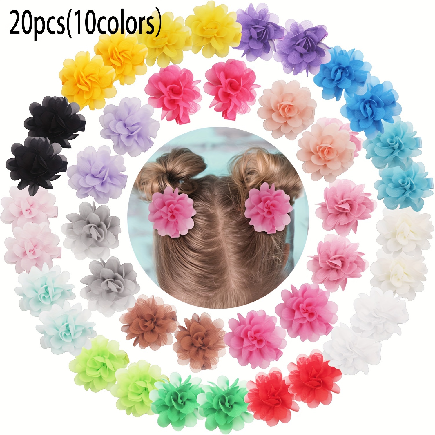 TEMU 20pcs 쉬폰 꽃 머리 클립, 십대용 꽃 작은 머리핀 (10가지 색상)|머리핀