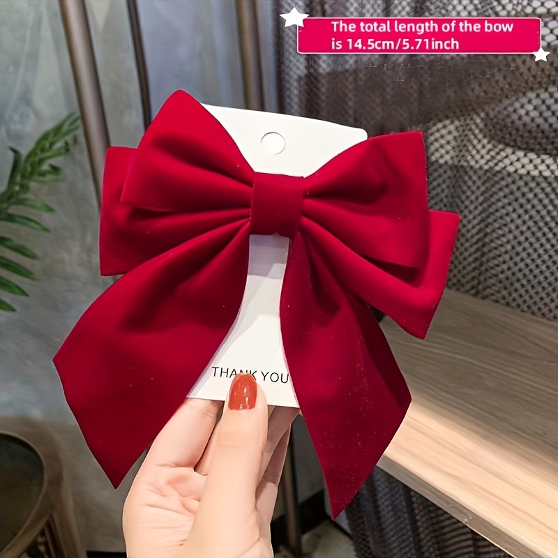 TEMU 1개 우아한 플러시 나비 머리핀 - 레드 리본 & 리본 디자인, 여성용 부드러운 패브릭 헤어 액세서리, 파티, 휴일 및 일상 사용에 적합, 헤어피스, 빈티지 스타일