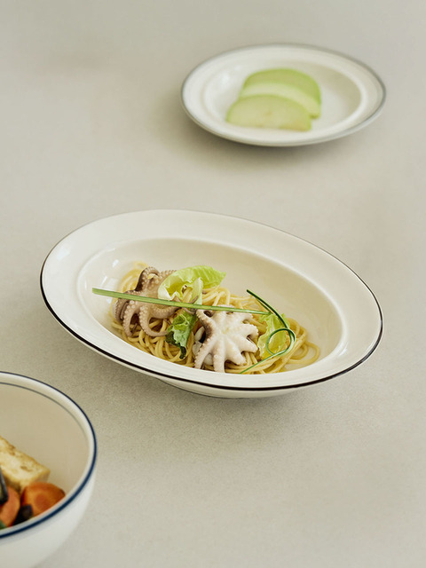 윤도자기 순백 화이트 도자기 넓은면기 2P