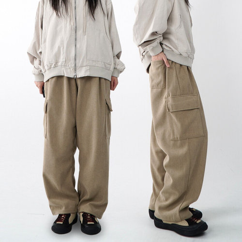 오엔엘 / 여자 카고 융털 코듀로이와이드팬츠 골덴바지 핀턱와이드팬츠