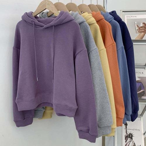 [셀러허브_여성트랜드패션]여자 후드티 후드 안감 숏 융털 기모 세미크롭 따뜻한