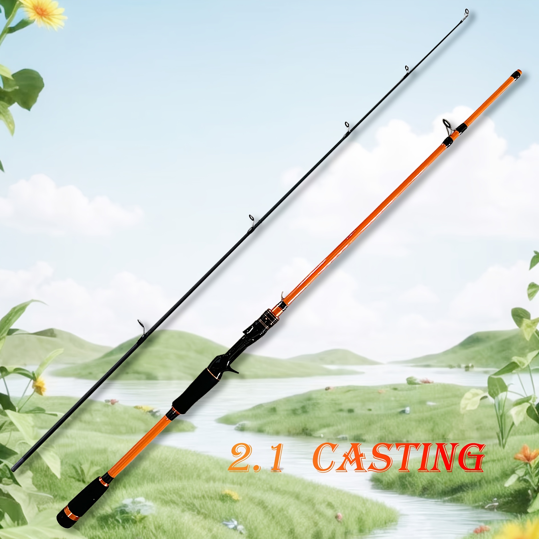 TEMU 오렌지색 블랙 디자인 카본 파이버 루어 로드 낚싯대 1.68m 2.1m 세그먼트 핸들 세라믹 가이드 링 디자인 아름답고 독특한 외관 블랙 피아노 래커 회전 금속 알루미늄 장식 M 톤