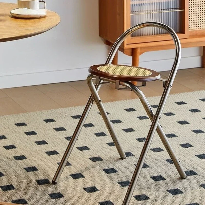 레트로 다이닝 체어, 가정용 등받이가 있는 세련된 레저 의자, 밝고 어두운 장식 스타일에 이상적, 접이식, 전기 도금 프레임