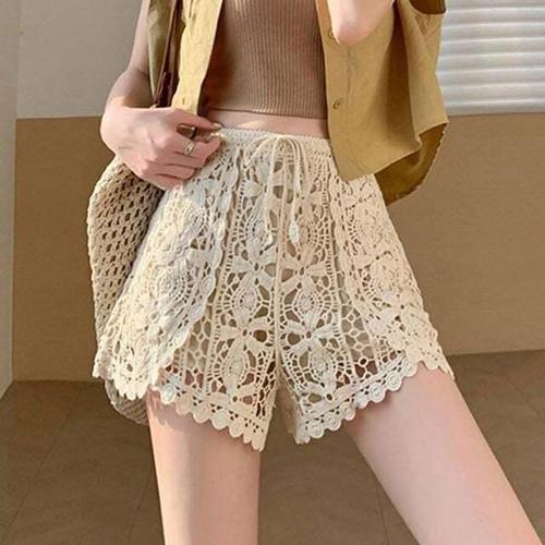 옷자락 / 여자 레이어드 이너 레이스 펀칭 뜨개 숏 팬츠