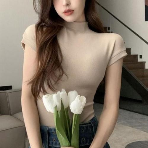[셀러허브_여성트랜드패션]ONM 여자 반목 반폴라 반팔티 슬림핏 이너 캡소매 티셔츠