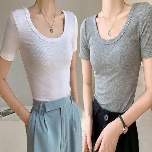 [엄지척]여자 딥 U넥 슬림핏 반팔 골지 티셔츠 이너 티셔츠_19614015_667501
