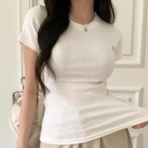 [엄지척]무지 이너 슬림핏 여성 라운드 반팔 티셔츠_19557811_667501