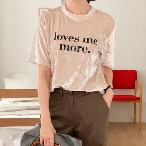 [옷자락] 여자 벨벳반팔티 겨울 라운드넥 이너 레터링 티셔츠