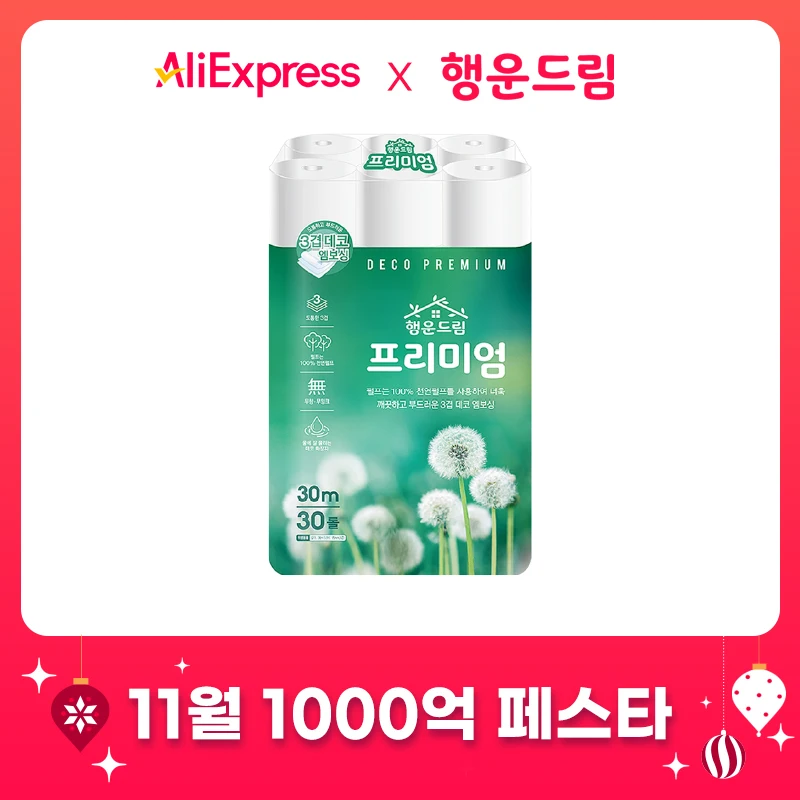 [천연펄프] 행운드림 프리미엄 3겹 30m 30롤 화장지 휴지 비데겸용 두루마리