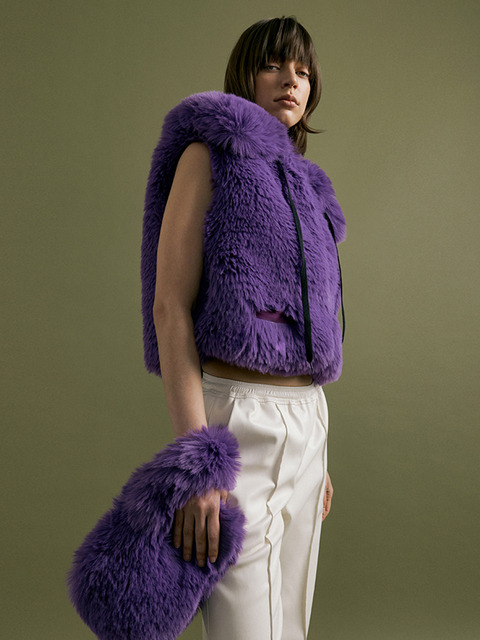 [몰리올리] MONE 에코퍼 크롭 이지 퍼 베스트 [퍼플] 파우치세트