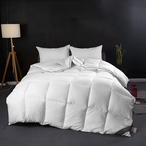 TEMU 울트라-소프트 통기성 따뜻한 이불 - 폴리에스터, 추운 날씨용 사계절 코지 침구, 클래식 순백색 초대형 퀼트 디자인, 세탁기 사용 가능