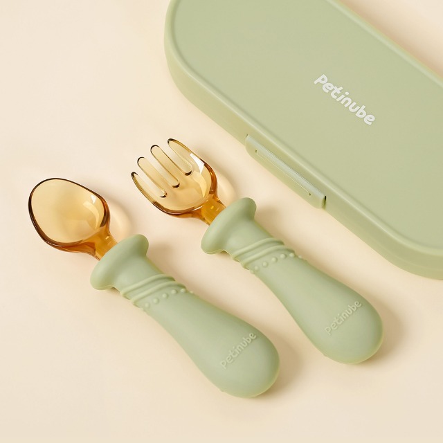 옥수수 유아용 식기 스푼 포크 수저통 케이스 세트 이유식