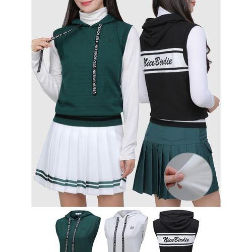 [이지바이]후디버디 여성 간절기 골프 레터링 후드 포인트 슬림 니트 조끼(W6SV05)