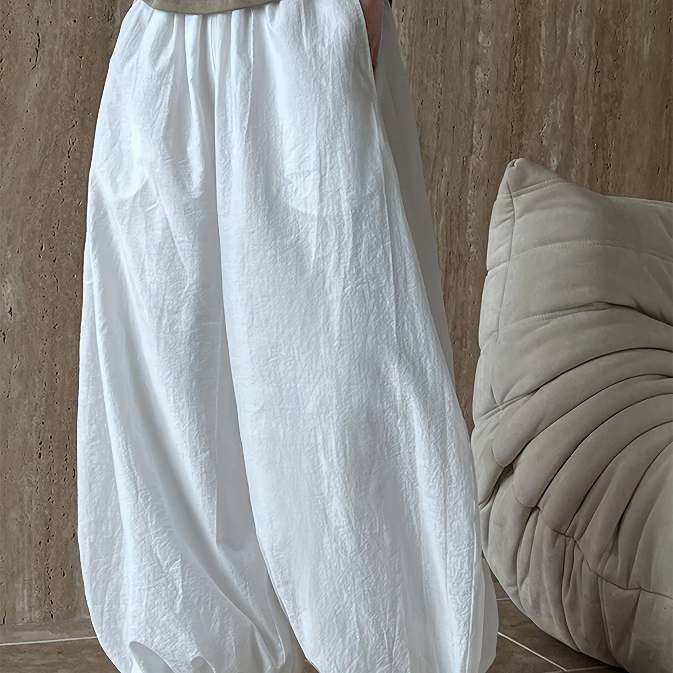 TEMU 여성용 우아한 와이드 레그 팬츠 - 발목 길이 (앵클 ) 테이퍼드 팬츠, 포켓 포함, 벨트 없는 루즈핏, 캐주얼 & 포멀 웨어, 사계절 맥시 길이, 논스트레치 소재 (세탁기 사용 가능) - 테일러드 우아한 라인 - 팬츠