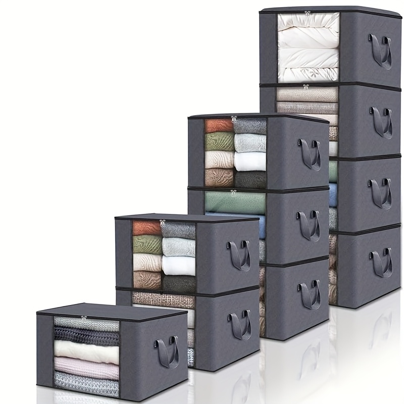 TEMU 10개입 접이식 두꺼운 원단 수납백 (손잡이 포함) - 침실, 옷장, 옷, 담요, 옷장 정리용, 회색, 침대 밑 수납