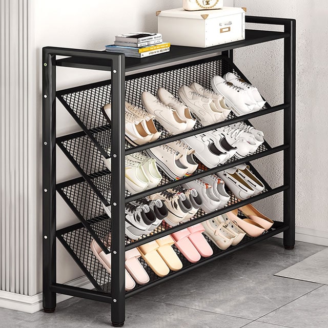 TEMU 탈착식 후크가 있는 5단 금속 신발 및 모자 랙 - 집이나 아파트용 다층 보관 정리대, 검정 또는 흰색, 높이 24인치, 모자, 캡 및 액세서리를 위한 견고한 디자인, 신발 보관 정리대|모자|거실장|다리미