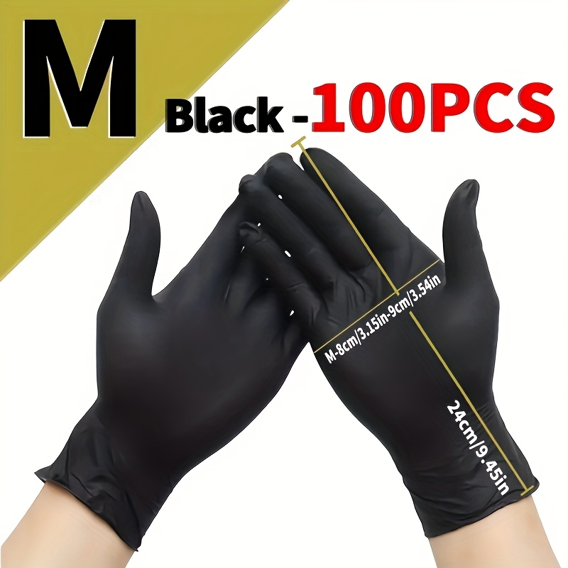TEMU 100개 블랙 일회용 니트릴 장갑 - 방수 - 가정 청소, 미용실, 네일 살롱, 애완동물 목욕, 욕실 사용에 적합 - 고탄력 장갑 - 청소용 (100개 세트)