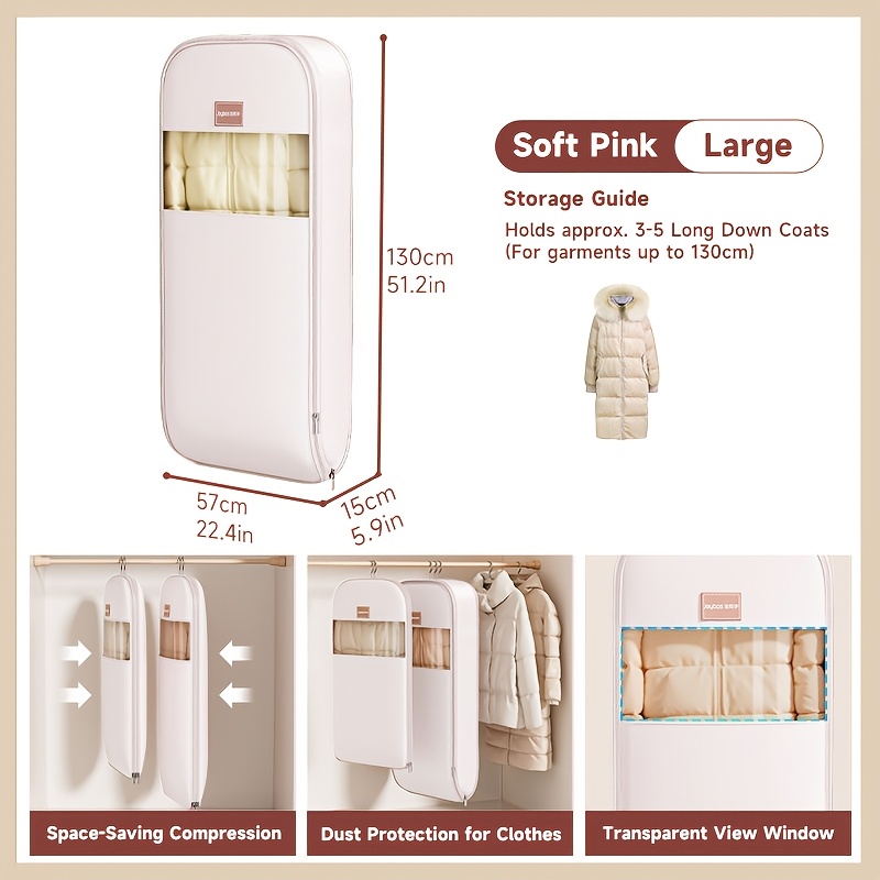 TEMU 내장형 압축 지퍼가 있는 공간 절약형 옷걸이형 의류 가방, 다운 재킷용 방진 보관 가방, 코트, 담요, 스웨터, 계절 의류, 옷장 정리, 정장 가방 및 드레스 옷걸이 가방에 적합