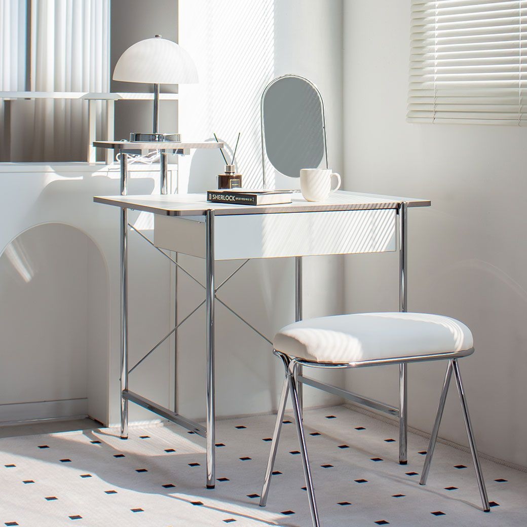 올슨 미니 콘솔형 화이트 테이블 실버 엣지 수납 슬림 화장대 (800)