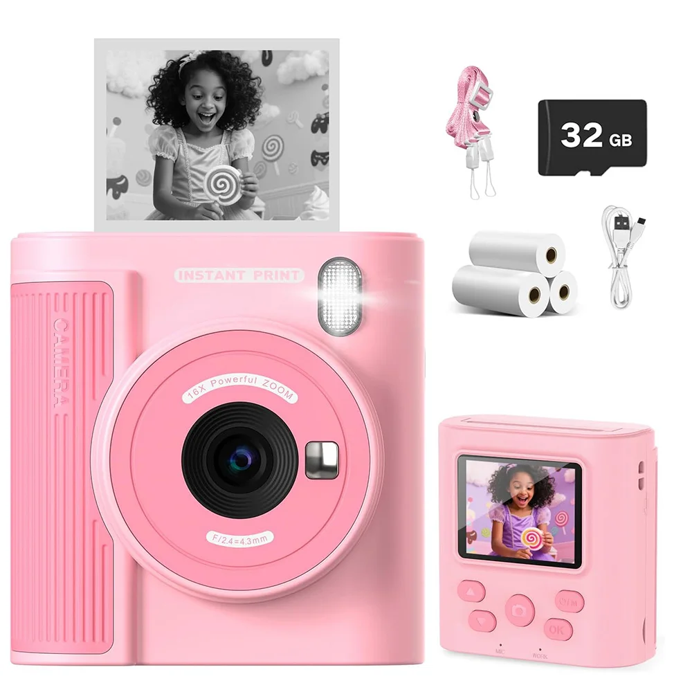 어린이용 즉석 인쇄 HD 1080P 16배줌 디지털 카메라 비디오 레코더 장난감 (여아/남아용) 최고의 크리스마스/생일 선물