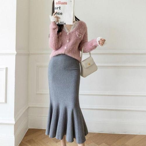 [다잇템]여성 나들이 여성스러운 인어공주 스웨터 치마