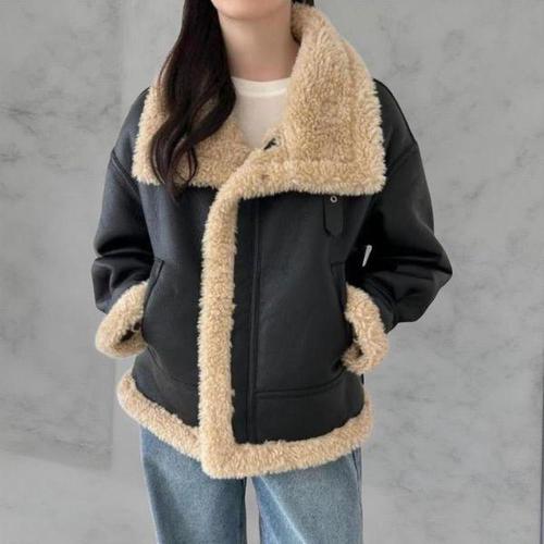 [옷자락]여성 두툼 인조 퍼 안감 무스탕 하이넥 재킷