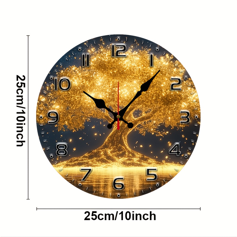 TEMU 1개_발광 오브 라이프 배경 10인치 우드 베니어 유럽 및 미국 스타일 라운드 무소음 평면 시계 - 배터리 미포함 - 거실, 침실, 주방에 이상적 - 미적 홈 및 오피스, 축제 분위기 룸 액센트 기하학 시계