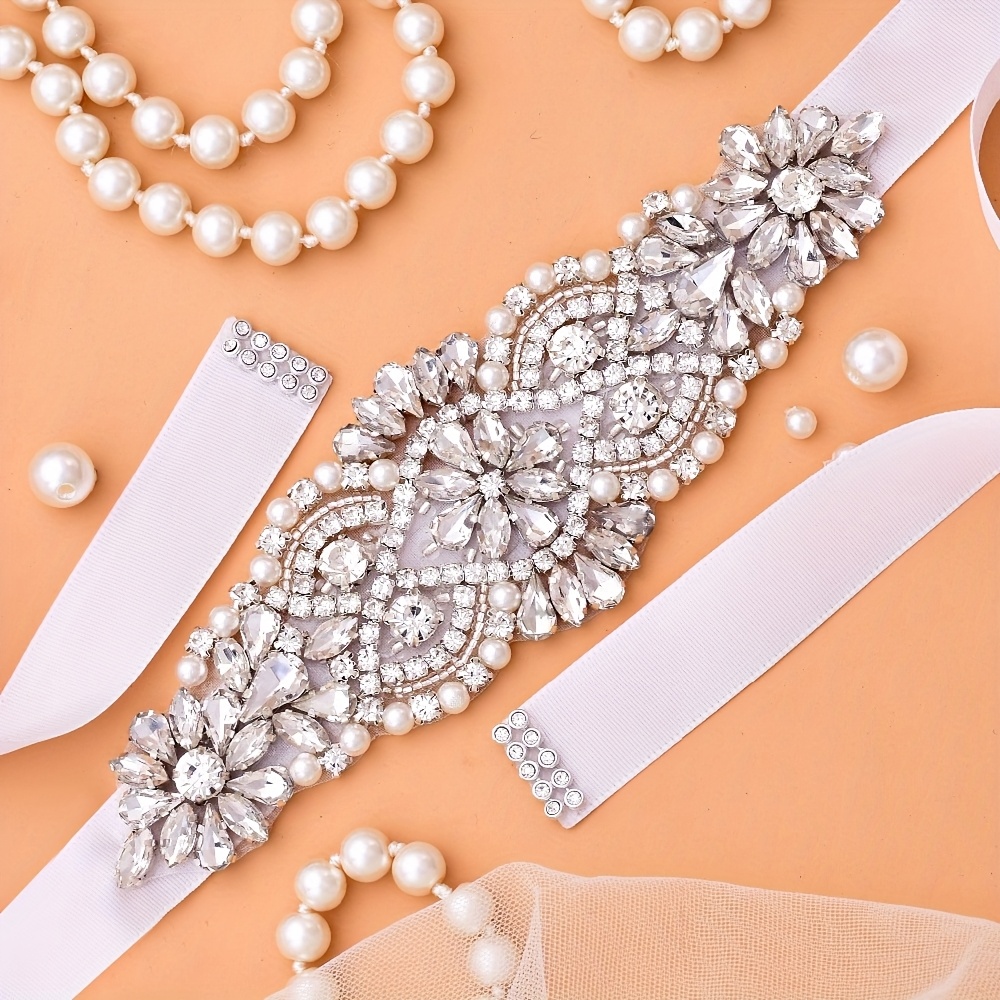 TEMU 라인스톤 장식으로 고급스럽고 다재다능한 신부 벨트. 웨딩 드레스 및 정장에 완벽하며, 정교한 손바느질 디테일이 특징입니다.