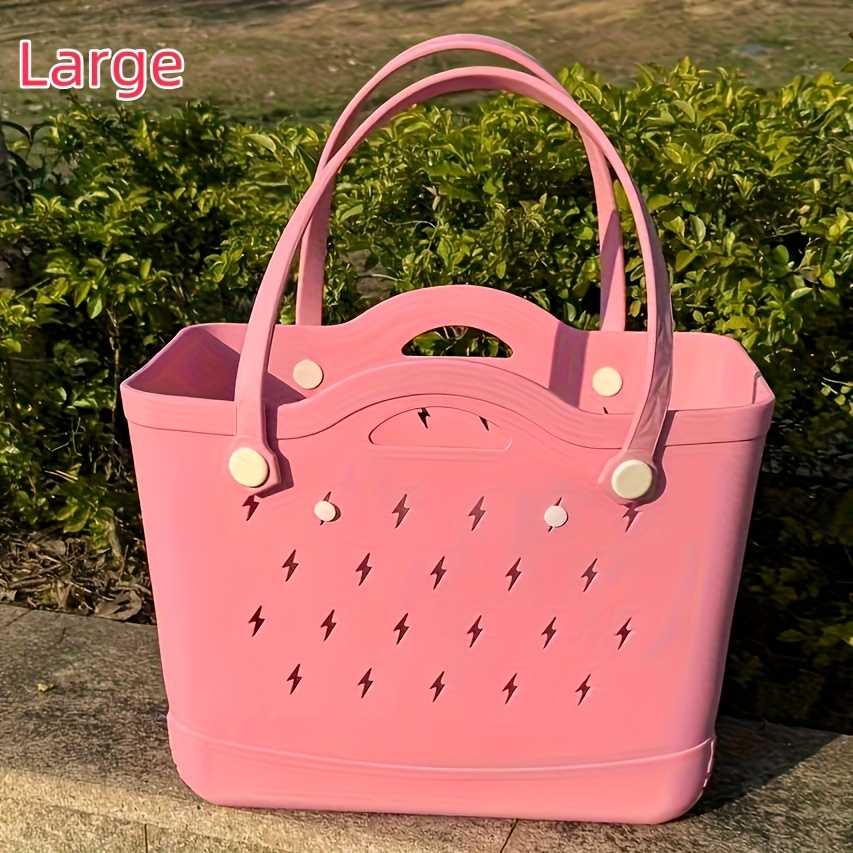 TEMU 대용량 경량 EVA 비치 토트 백, 번개 디자인, 8가지 화려한 색상, 해변, 수영장, 보트, 식료품, 스포츠용으로 완벽, 캐주얼 숄더 백 디자인, 휴대용 핸드백