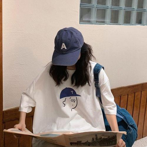[상룡비 선택] 일러스트 소녀 패턴 순면 반팔 티셔츠 여성 달콤한 쿨 디자인 영문자 장식 남녀 통근 커플 여름 상의