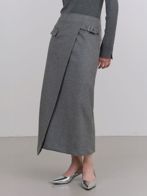 [일로제] 언발 벨트 울 스커트 (그레이)