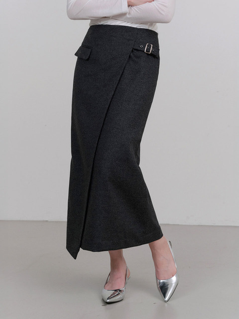 [일로제] 언발 벨트 울 스커트 (차콜)