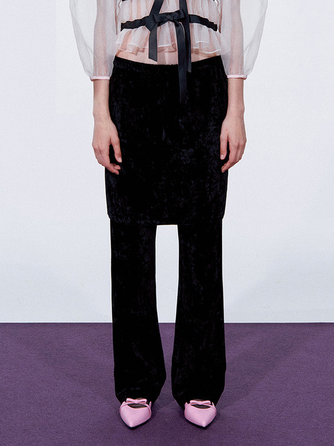 [카일로] 레이어드 벨벳 스커트 팬츠 블랙