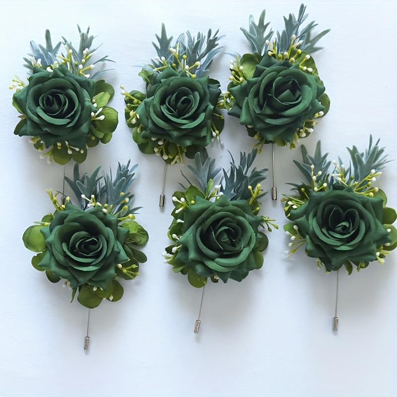 TEMU 결혼식, 약혼식용 우아한 패브릭 장미 & 코사지 키트 6세트 - 신부, 신랑, 신부 파티, 프롬을 위한 인공 진녹색 장미 플로럴 액세서리 - 추수감사절, 발렌타인데이, 어머니날 & 아버지날에 완벽한 가을 테마, 정장 이벤트 장식,빈티지 웨딩 데코,웨딩 플라워 세트,이벤트 플래너