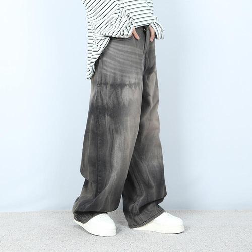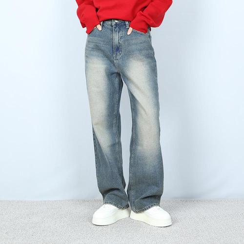 [옷자락]남자 여자 커플데님 캣워싱 커브드 와이드핏 청바지